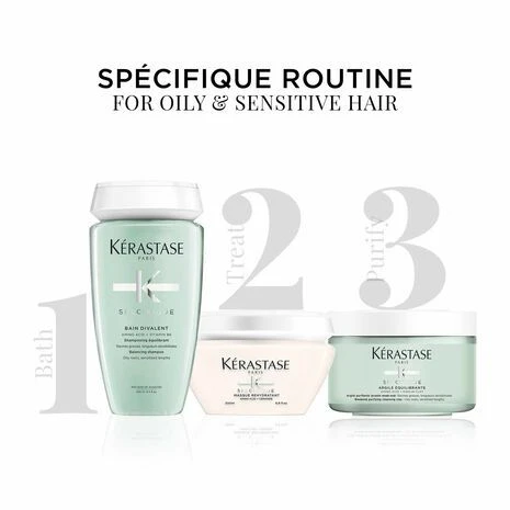 Kerastase Spécifique Bain Divalent is een zuiverende klei die de hoofdhuid diep en toch zacht reinigt en zuivert. De klei helpt het talgniveau op het haar in evenwicht te brengen en verwijdert vervuiling en onzuiverheden zonder je haar te strippen. De hoofdhuid voelt weer fris aan. De klei voedt het haar, geeft volume aan het haar, ontwart het haar en zorgt voor een lift vanuit de wortels van het haar.