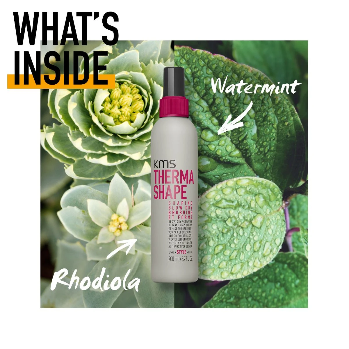 De KMS ThermaShape Shaping Blow Dry 200ml is een föhnspray. Het zorgt ervoor dat het haar eenvoudig in model te föhnen is en geeft het haar een lichte textuur. Deze spray geeft het haar een volle en natuurlijke look.