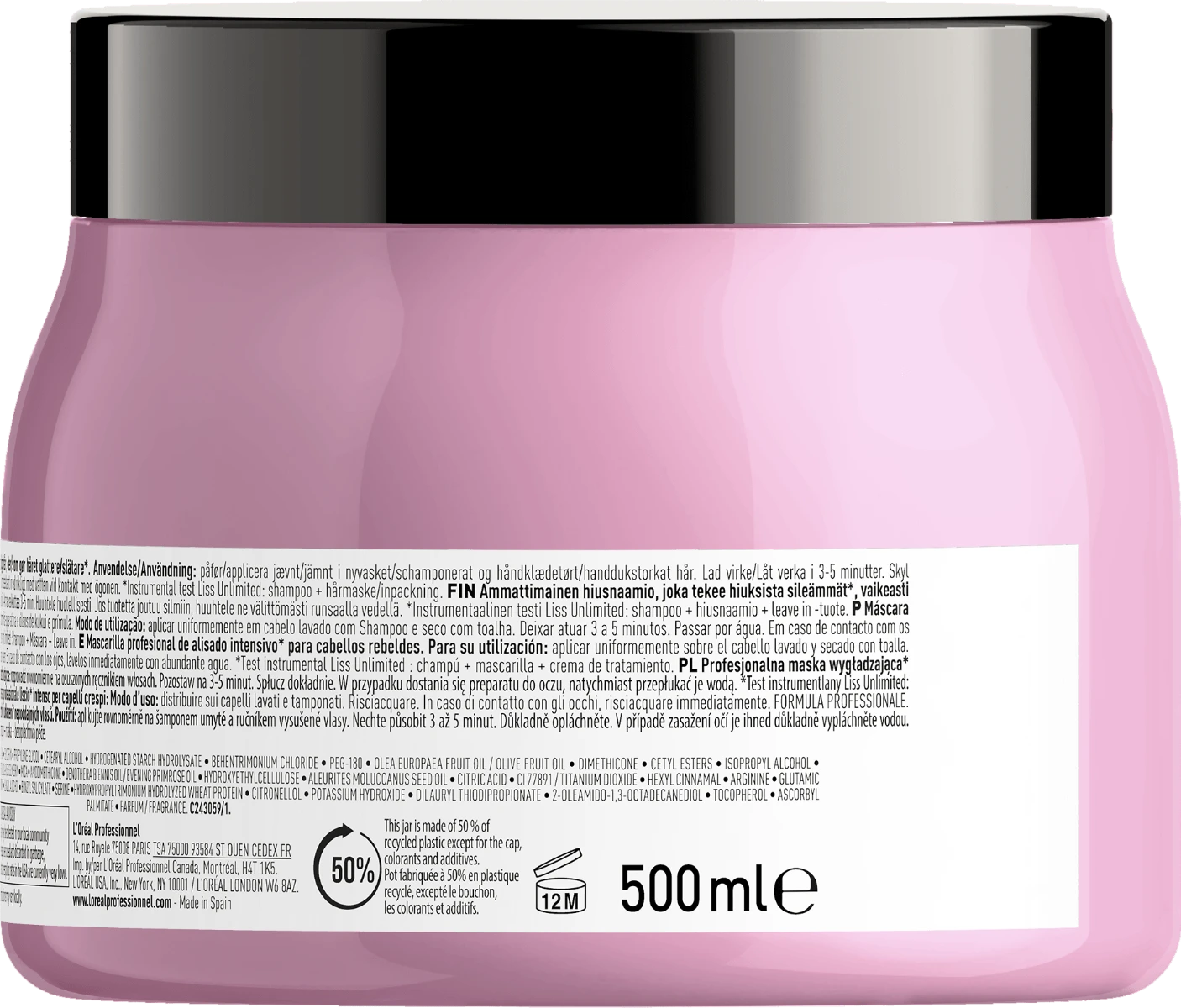 Het L’Oréal Serie Expert Liss Unlimited Masker gaat pluizig haar tegen door het haar een schild te geven tegen vocht.