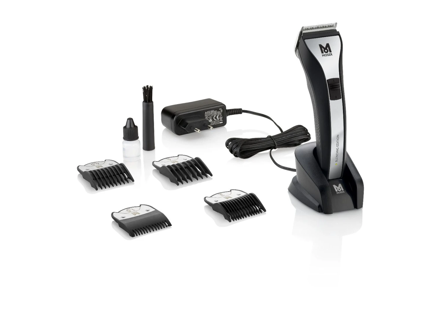 De Moser Chrom2Style Blending Edition wordt daarnaast geleverd met 4 nieuwe magnetische opzetkammen van 1.5mm, 3mm, 4.5mm en 6mm. Deze opzetkammen passen ook op de snijmessen van de standaard ChromStyle. Inclusief oplaadstandaard, energiezuinige plug-in-transformator, schoonmaakborstel en olie.