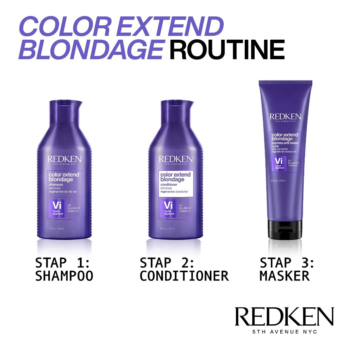 De Color Extend Blondage Conditioner bevat pure violet pigmenten. Deze pigmenten verwijderen ongewenste geeltinten uit het blonde haar. Daarnaast bevat de Blondage Conditioner het Triple Acid Protein Complex. Dit speciale complex versterkt en verheldert het haar.