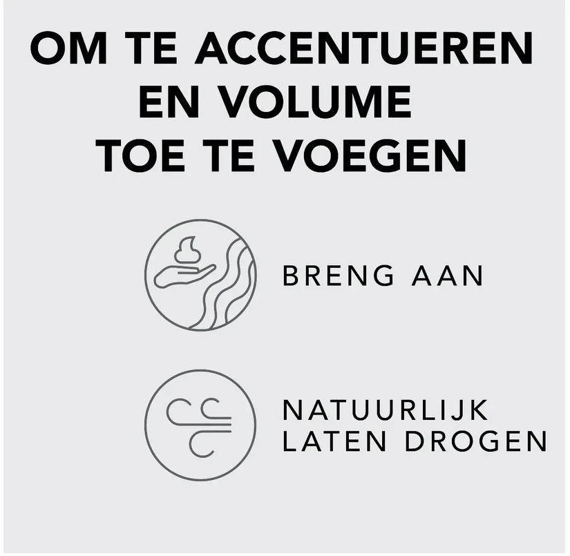 Breng aan op handdoekdroog haar, verdeel een bolletje ter grootte van een perzik op beide handpalmen en breng gelijkmatig aan op het haar (neem goed de haaraanzet mee voor meer volume). Voor extra body föhn het droog met een diffuser. Inhoud verpakking: 200 ml.