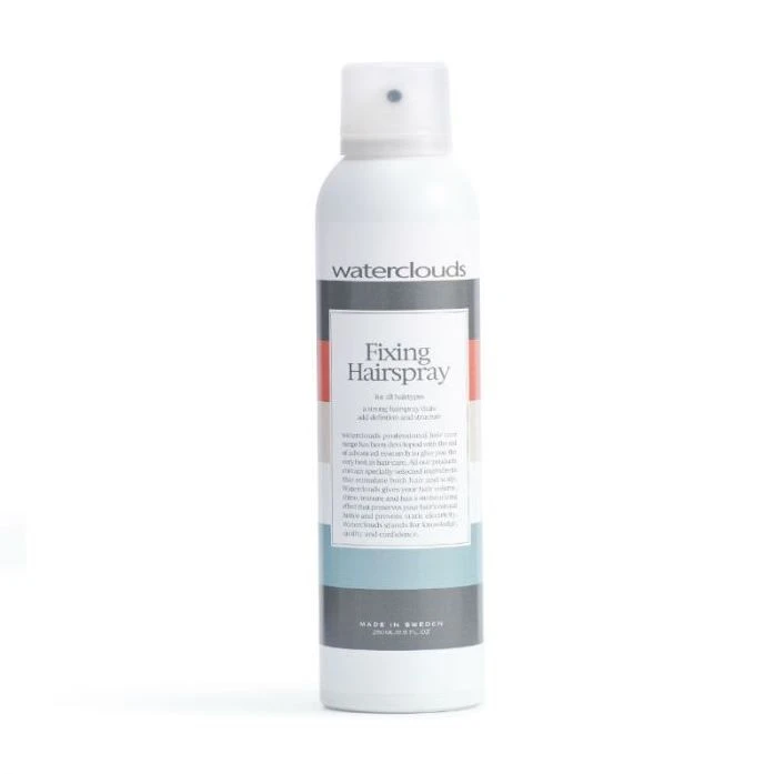 Waterclouds Fixing Hairspray geeft iedere look en haartype een langdurige, stevige hold. De spray laat geen doffe waas achter op het haar, maar geeft het juist een mooie en gezonde glans. De Fixing Hairspray is gemakkelijk weer uit te kammen.