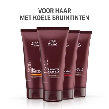 Breng Wella Invigo Color Recharge Cool Brunette aan op gewassen, nat haar. Laat 3-5 minuten inwerken en spoel daarna grondig uit.